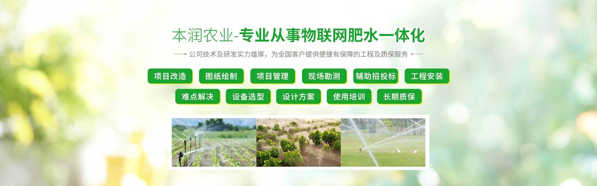 “用心做事,本潤(rùn)農(nóng)業(yè)”追求無(wú)止境,學(xué)習(xí)無(wú)止境,創(chuàng)新無(wú)止境,本潤(rùn)農(nóng)業(yè)將為您打造最專業(yè)最有保障的現(xiàn)代灌溉技術(shù)工程